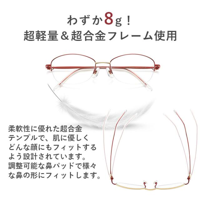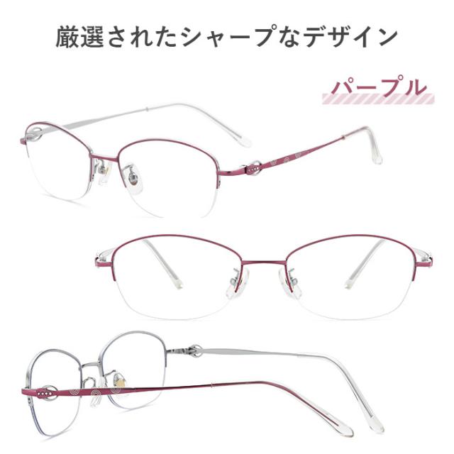度数+0.25刻みで選べる!老眼鏡 ブルーライトカット シニアグラス おしゃれ レディース メンズ PCメガネ ナイロール レッド パープル 8149