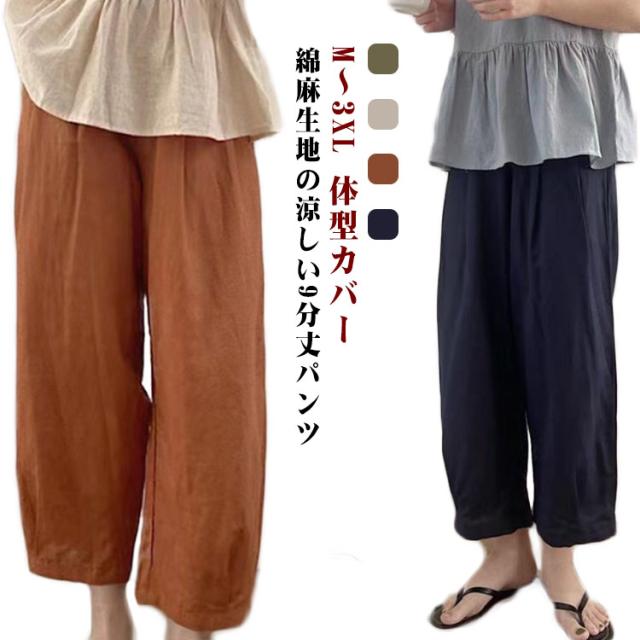 ひんやり 綿麻 無地 春 ワイドパンツ 夏 ギフト カジュアル おしゃれ オフィス ウェストゴム ゆったり ゆったり レディースファッション イージーパンツ 上品 通勤 通学 体型カバー 体型カバー ナチュラル 軽い コットンリネン 20代 30代 40代 50代 レディース
