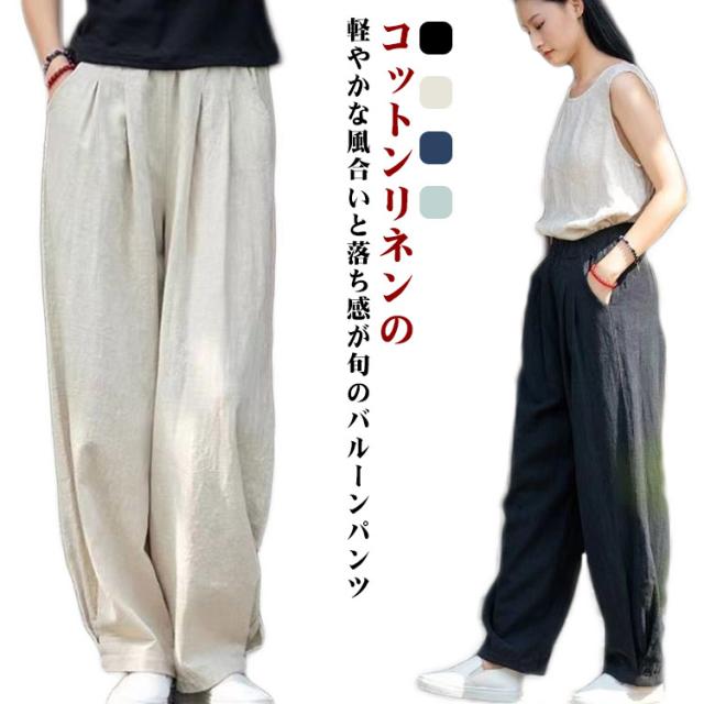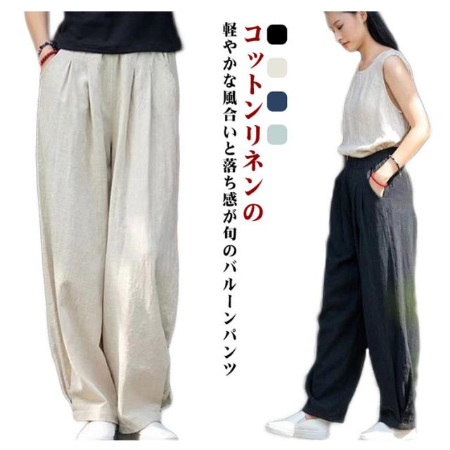 通勤 カジュアル パンツ 秋 綿麻 体型カバー 夏 コットンリネン バルーンパンツ 軽い 総ゴム ゆったり ポケット 体型カバー おしゃれ 高校生 大学生 オフィス レディース 春 ワイドパンツ きれいめ ナチュラル 軽い 上品 20代 30代 40代 50代 通学
