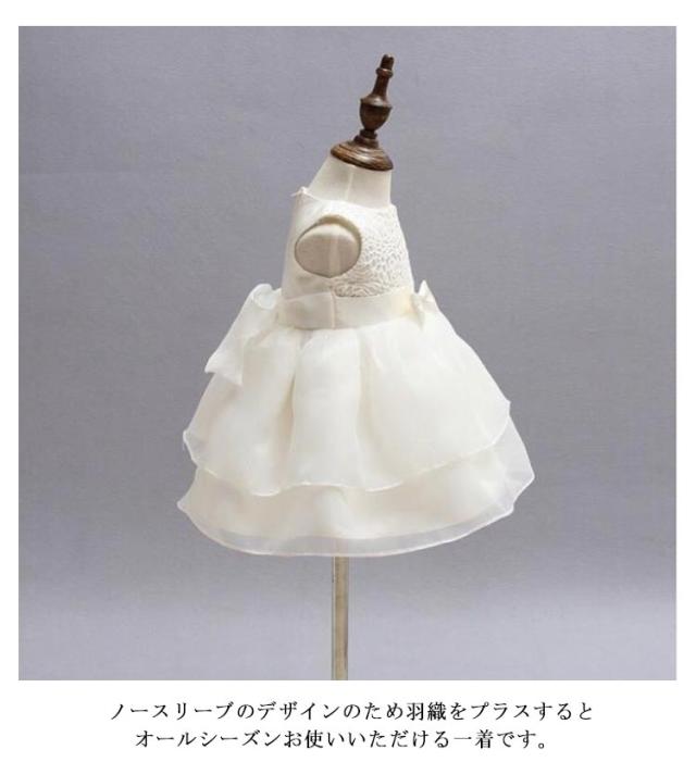 | とても上品で高級感あふれるデザインのフォーマルドレス。 可愛いわが子にはいつも可愛い姿でいてほしい! ハイウエストデザインなので、綺麗なシルエットでお召しいただけます ノースリーブのデザインのため羽織をプラスするとオールシーズンお使いいただける一着です。 ハーフバースデー、お宮参り、100日祝い、お誕生日などのフォーマルなシーンにおすすめ。 | |