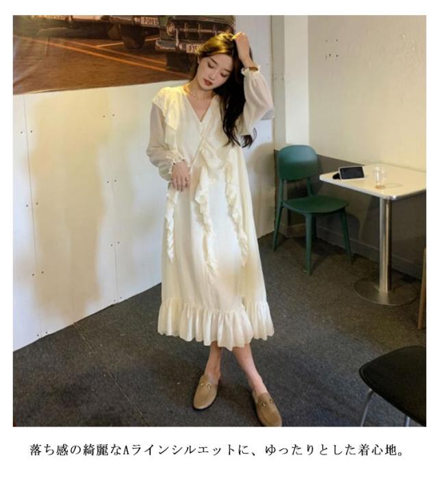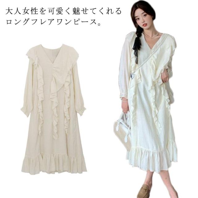 フォーマル お宮参り ミモレ丈 ワンピ きれいめ ロング Vネック 春 レディース マタニティ服 ゆったり 長袖 マタニティドレス 秋 大きいサイズ 体型カバー フレアワンピース ロングワンピース ワンピース
