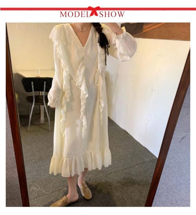 | 大人女性を可愛く魅せてくれるロングフレアワンピース。 フリルがアクセントになり、優しい雰囲気を醸し出します。 程よい甘さと女性らしさを演出してくれる大人なワンピースは着るだけで映える1枚♪ 落ち感の綺麗なAラインシルエットに、ゆったりとした着心地。 普段使いはもちろん、おでかけ、デートや記念日、など様々な場面で着ていただけます。 | |