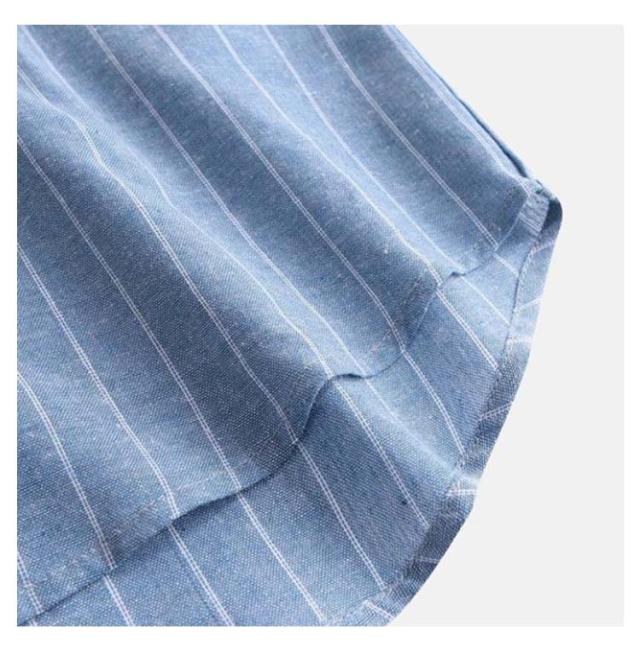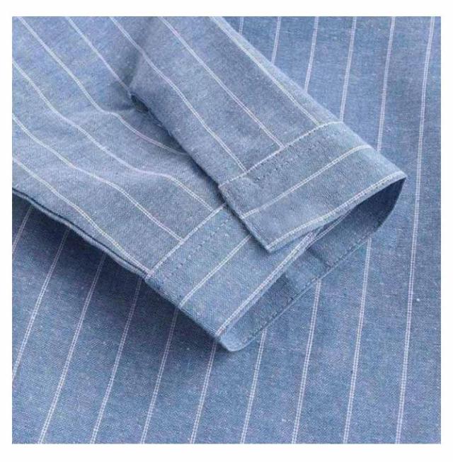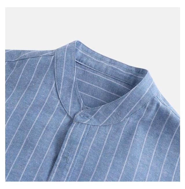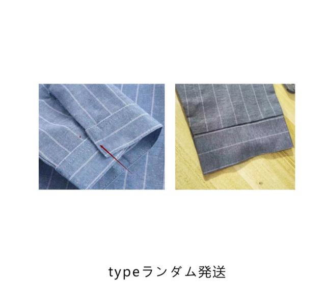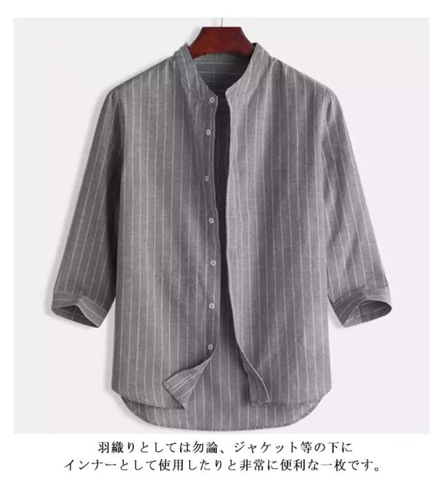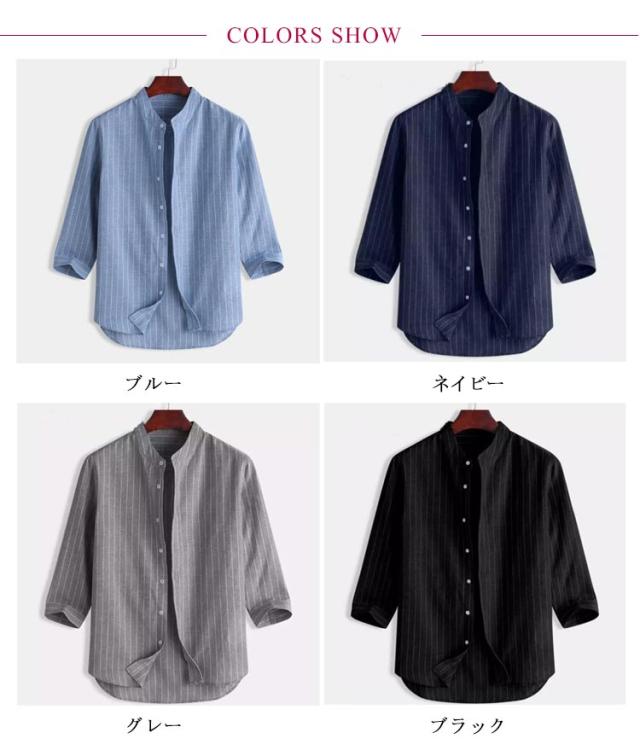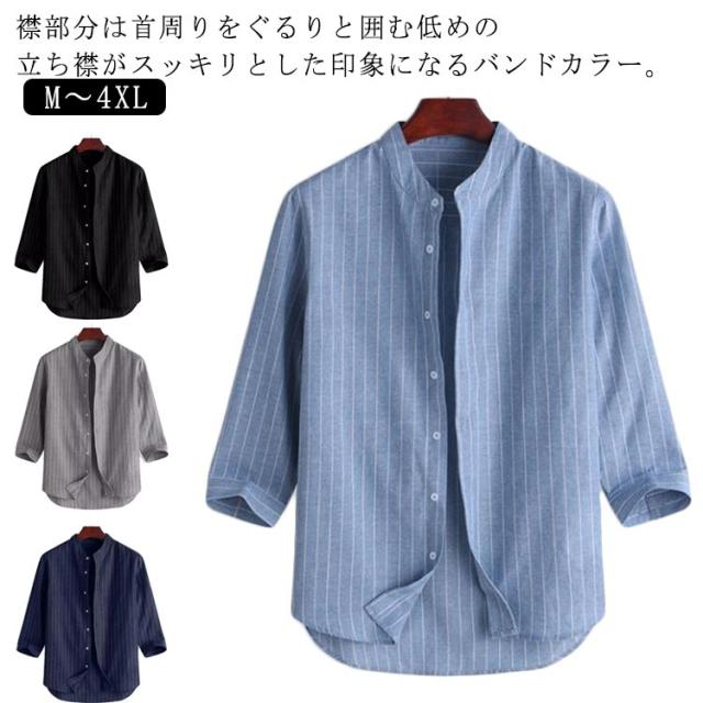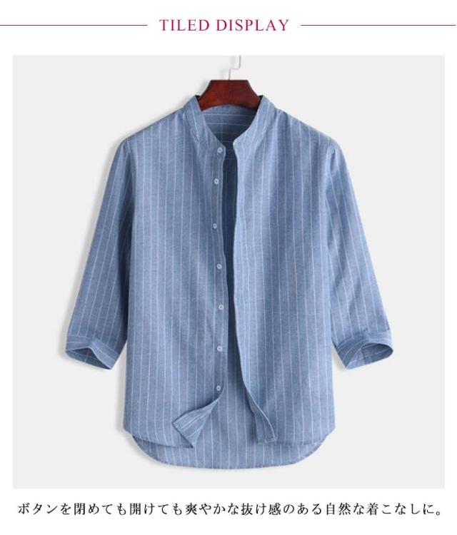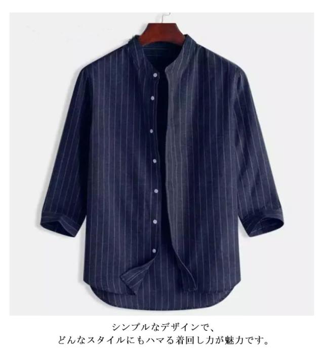バンドカラーシャツ 無地 シャツ リラックスウエア シャツ・ブラウス ネイビー トップス 七分袖 ストライプ プレゼント 7分袖