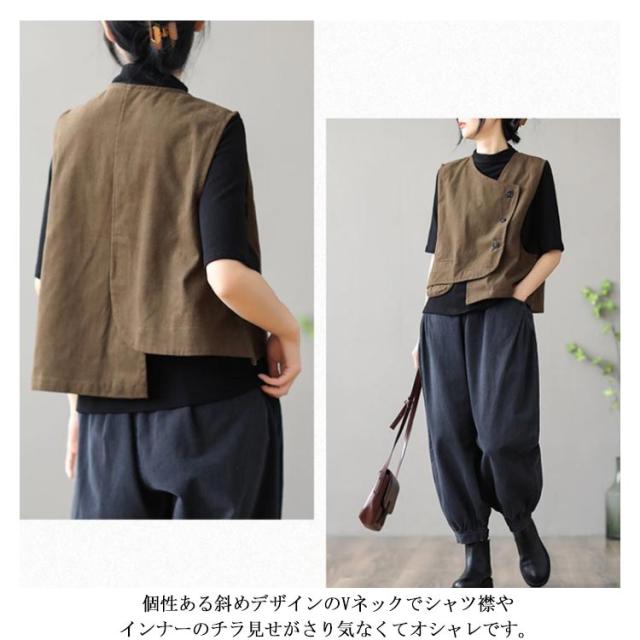 ベスト 春服 袖なし トップス ノースリーブトップス アシメトリー 送料無料 綿 斜めデザイン ナチュラル 春 夏 コットン レディース 40代 可愛い 20代 30代 ショート丈