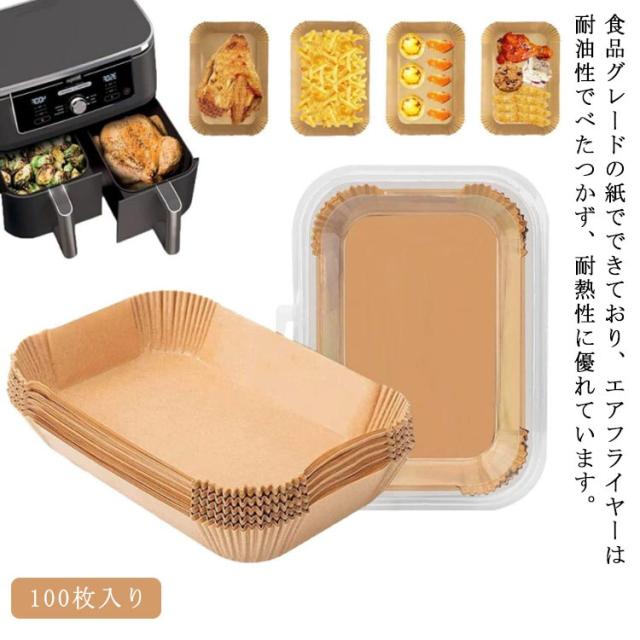 耐高温 四角 長方形 エアフライヤー クッキングシート 100枚入り 食品級素材 ドライフルーツ 耐油性 油を使わない 使い捨て 耐水性 ノンオイルフライヤー エアフライヤー専用紙 低カロリー ダイエット 健康 唐揚げ 料理