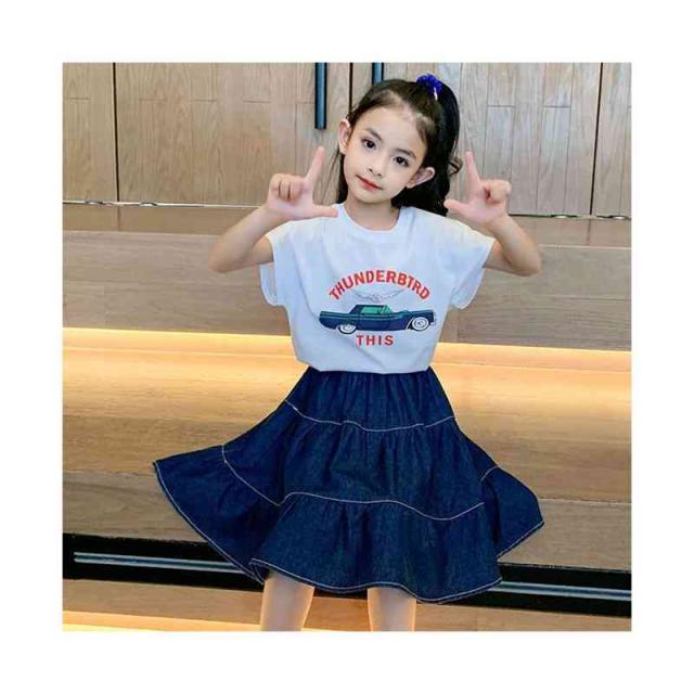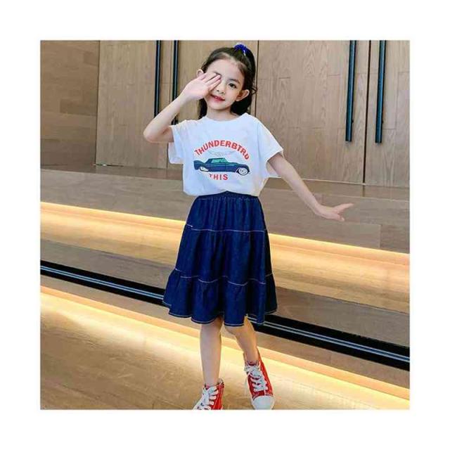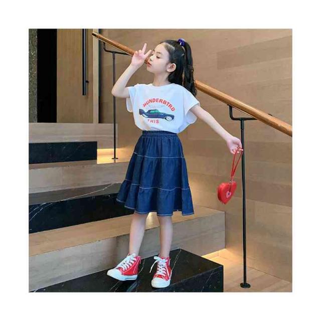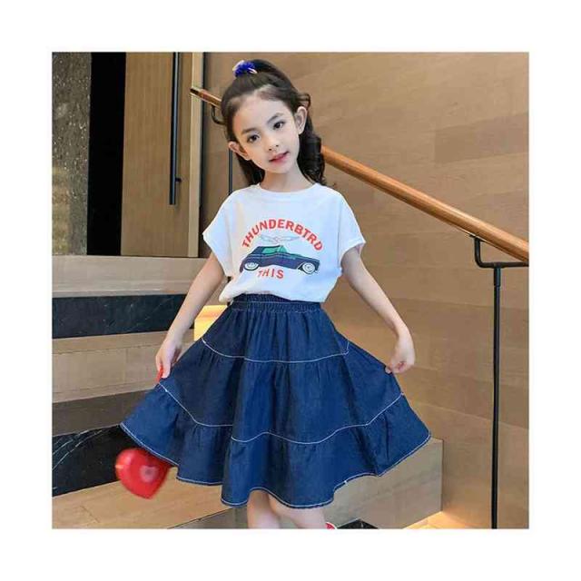スカート フレアスカート デニムスカート ガールズ フレア ボトムス Aライン デニム 子供服 スカート お洒落 ミディアム スカート ウエストゴム 可愛い キッズ カジュアル 女の子 女児 デニムスカート 春夏秋