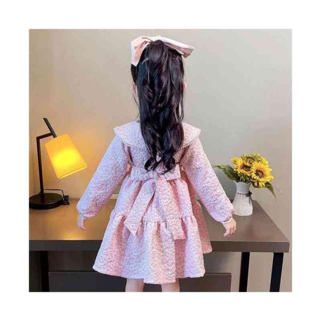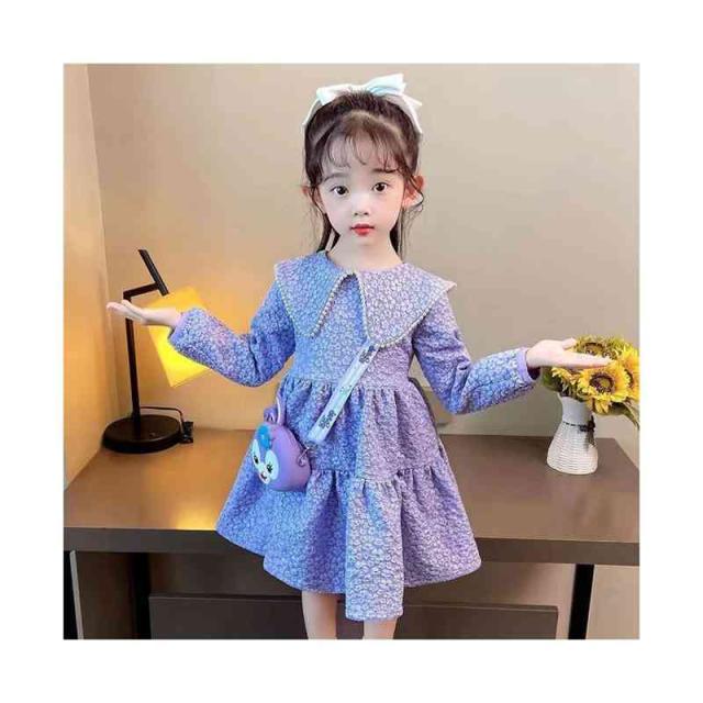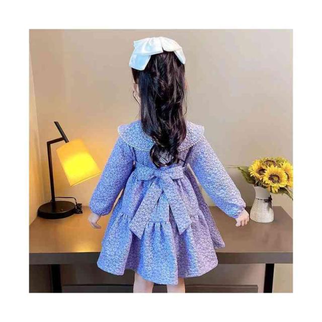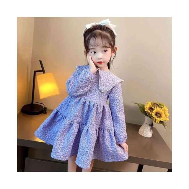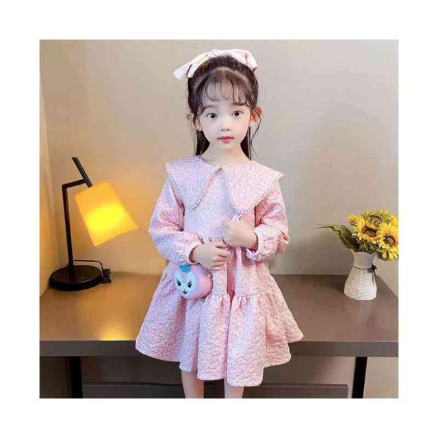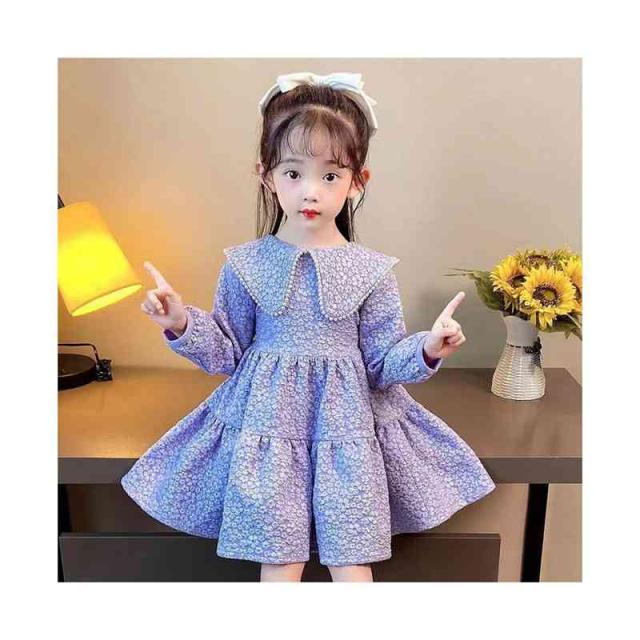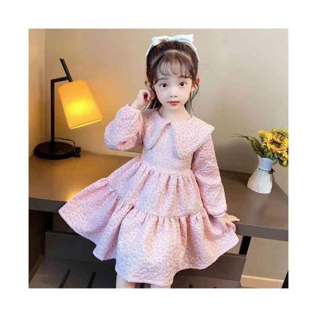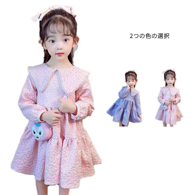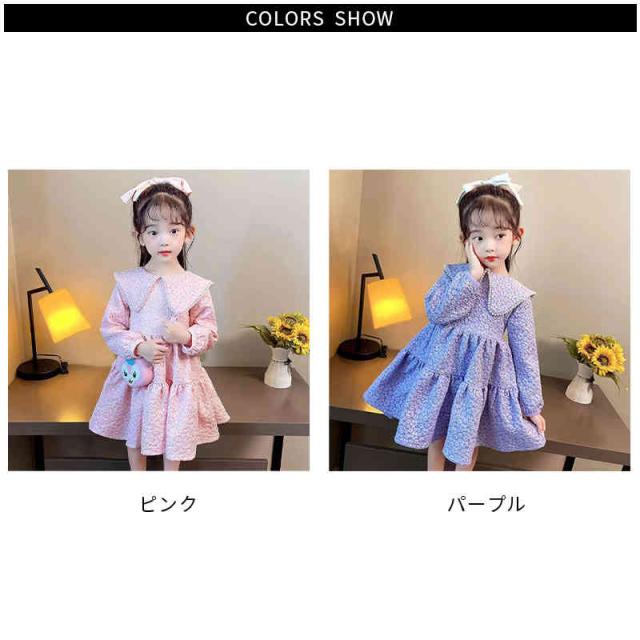 折襟 ロングワンピース カジュアル 折襟ワンピース 女の子 花柄ワンピース 春秋 プリーツワンピース 長袖 花柄 シンプル 子供ワンピース お洒落 送料無料 おでかけ キッズ