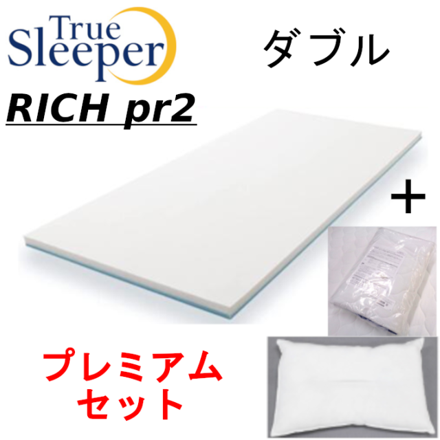 トゥルースリーパー最新型プレミアリッチD・ダブル特別サービス3点セット 豪華版専用カバー&丸洗い頸椎枕付き メーカー直仕入品新品 抗菌 防カビ 防ダニ 低反発マットレス 【True Sleeper【送料無料】【正規品】最新型ショップジャパン・マットレス】