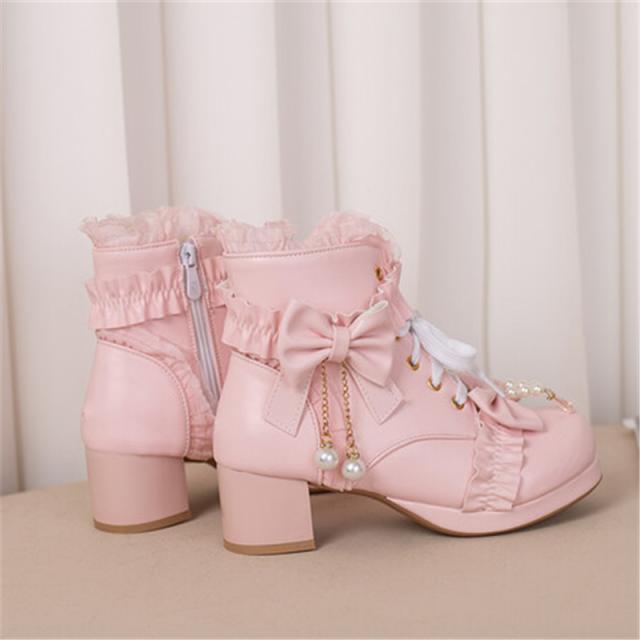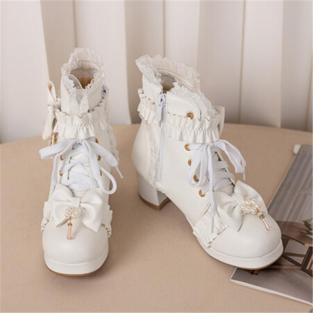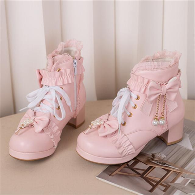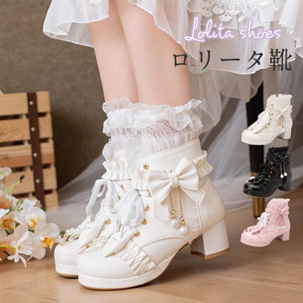 ロリータシューズ 革靴 レディース ロリータ 靴 シューズ ブーツ 厚底 レース 甘ロリ ロリィタブーツ リボン ゴスロリ ハイカ