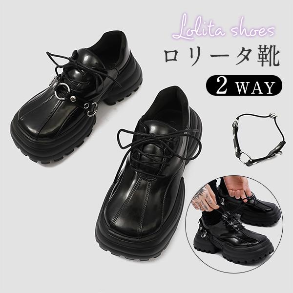 ロリータシューズ 革靴 レディース ロリータ 靴 チョーカー 春夏 厚底 JK ローファー ウォーキング 2way パンプス 歩き