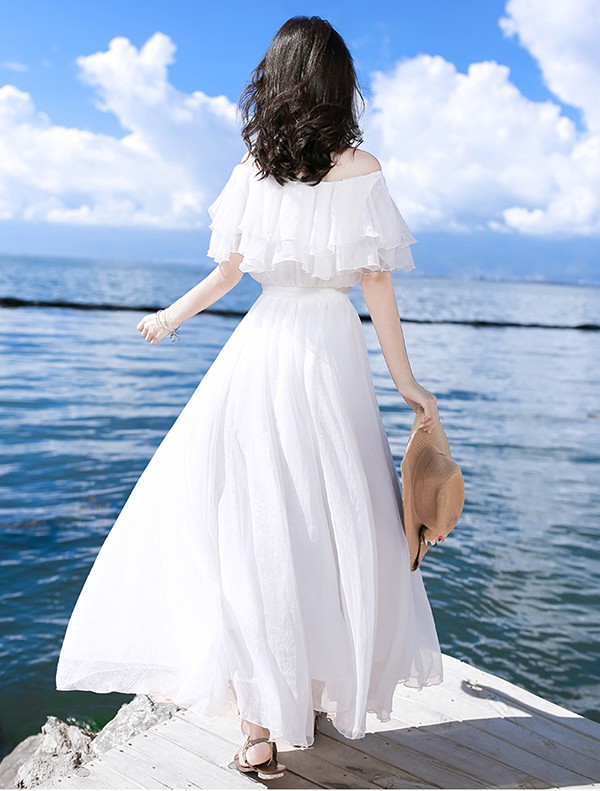 ワンピース オフショルダー マキシ丈 大きいサイズ 上品 夏ワンピース 大人可愛い 夏ワンピ リゾートワンピース 無地 セクシー おしゃれ かわいい 女性らしさ溢れる ハワイ 沖縄 ホワイト 白 レッド 赤 S M L 2L 3L bs003s1s1la