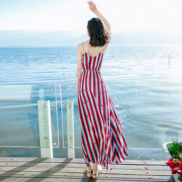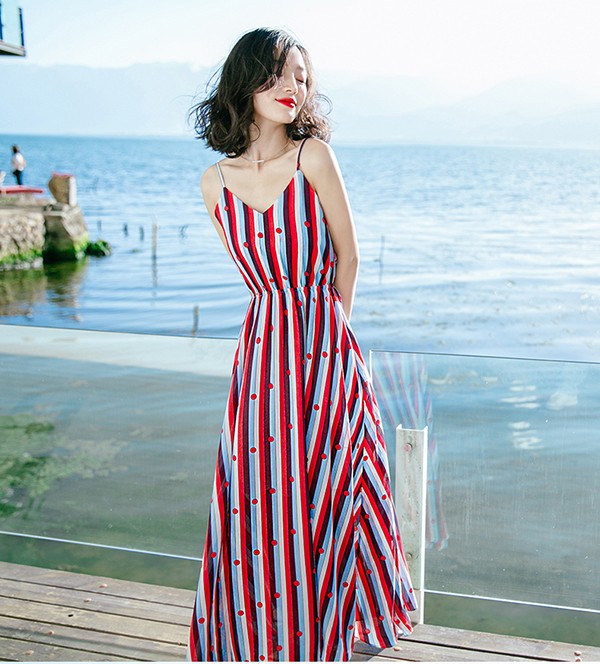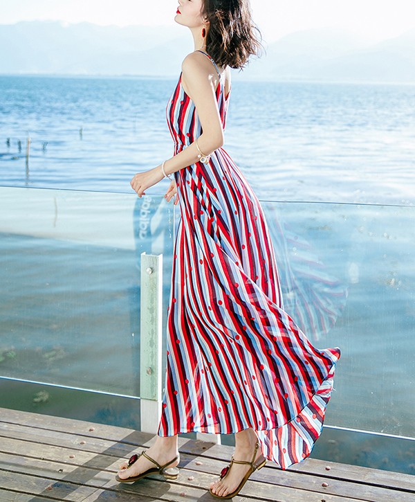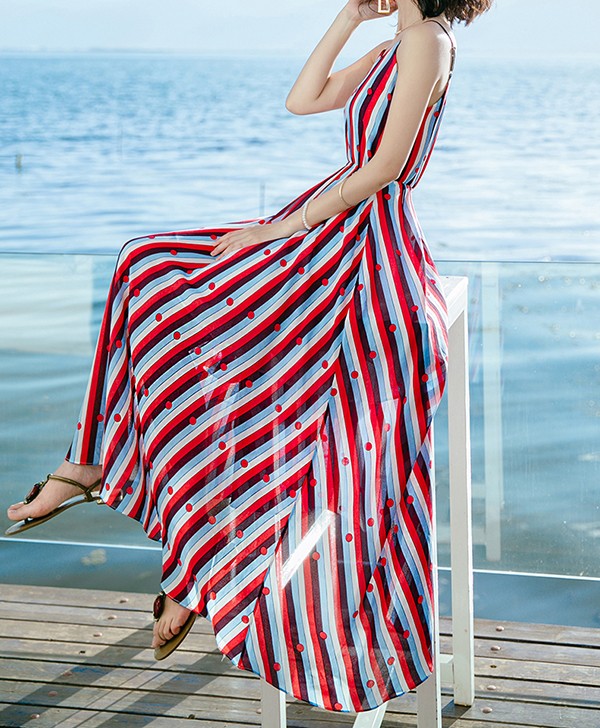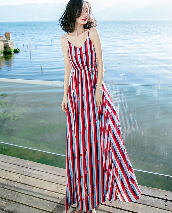 ワンピース キャミソール マキシ丈 大きいサイズ ノースリーブ 上品 夏ワンピース 大人可愛い 夏ワンピ リゾートワンピース 無地 セクシー おしゃれ かわいい Aライト 広がる裾 女性らしさ溢れる ドット柄 ハワイ レッド 赤 S M L 2L 3L bs004s1s1la