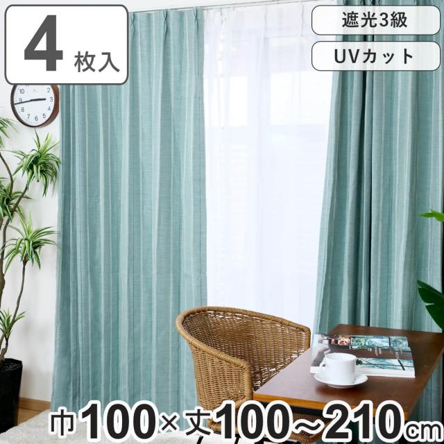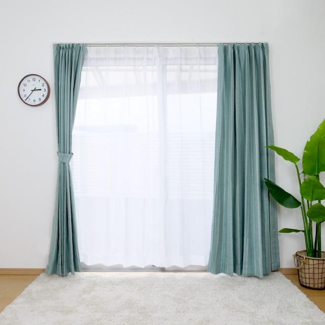 カーテン 4枚セット 遮光カーテン UVカット レースカーテン 幅100cm×丈100〜210cm ターコイズ ( ドレープカーテン レース 既製 間仕切り 窓 目隠し UVカットレース 遮熱 ウォッシャブル 無地 シンプル セット 4枚組 両開き )