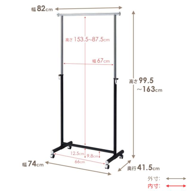 ハンガーラック 高耐荷重 幅82cm ( パイプハンガー 頑丈 耐荷重80kg キャスター付き 高さ調節 高さ99.5〜163cm 業務用 コートハンガー コート掛け ブラック 丈夫 伸縮 リビング 玄関 オフィス ハンガー掛け 洋服 衣類 掛け )