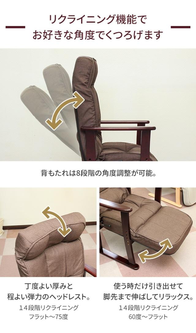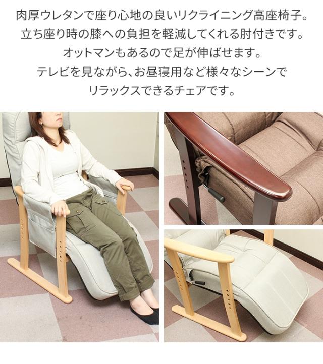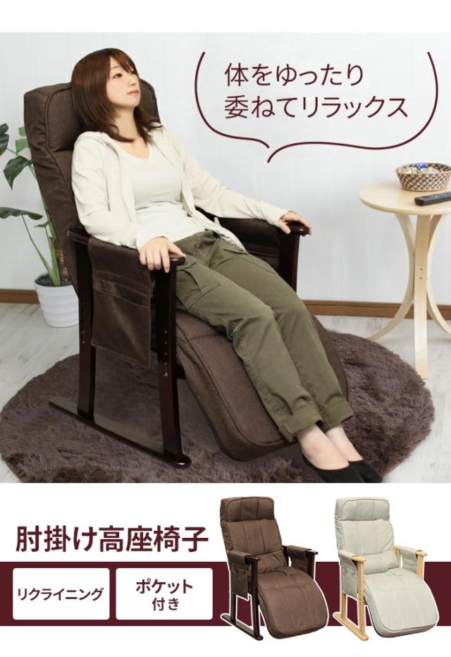 高座椅子 リクライニングチェア 肘付き 1人用 ハイバック リクライニングソファ パーソナルチェア 肘掛け ソファ 椅子 いす