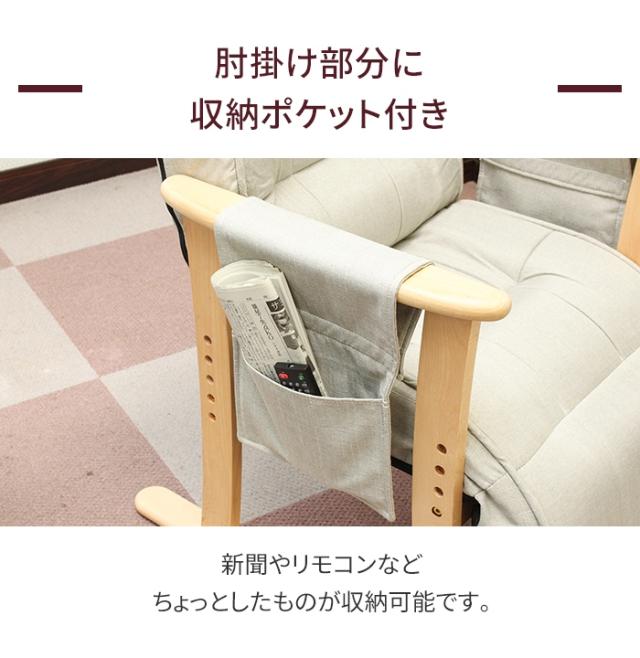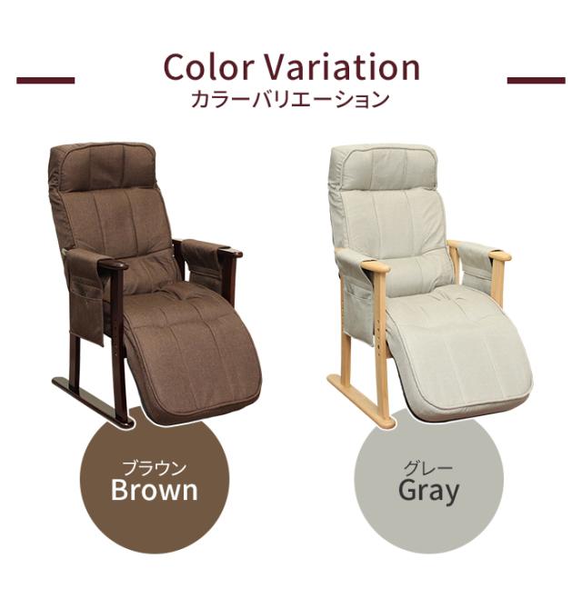 リクライニングチェア 高座椅子 1人用 肘付き ハイバック リクライニングソファ パーソナルチェア 角度調節 肘掛け ソファ 椅子 いす ポケット付き 高齢者 お年寄り 腰痛 座椅子 ブラウン グレー