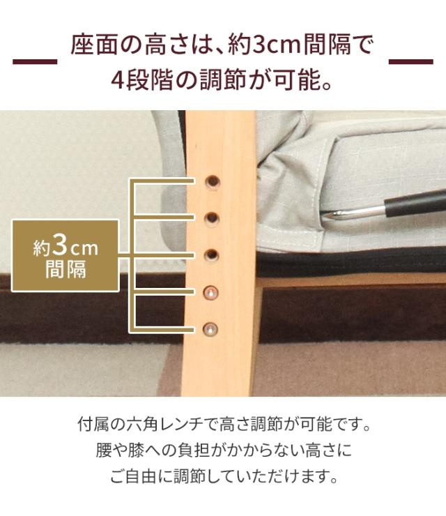座面の高さは、約3cm間隔で4段階の調節が可能。