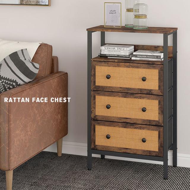 チェスト 3段 引出 収納 ラタン調 ラタン風 籐家具 チェスト タンス ランドリー収納 リビングボード リビング 収納 ランドリー タオル スチール脚 おしゃれ 韓国 インテリア 脚付き 組立簡単 アジアン エスニック オリエンタル アンティーク