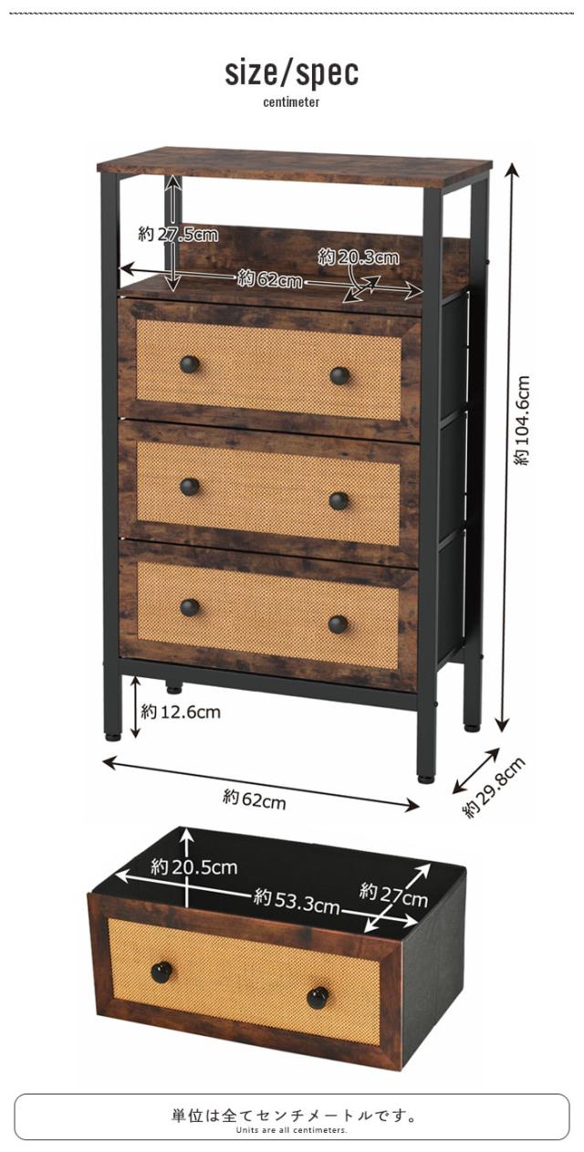 ※このページは[引出3段 高さ104.6cm]を販売しております。