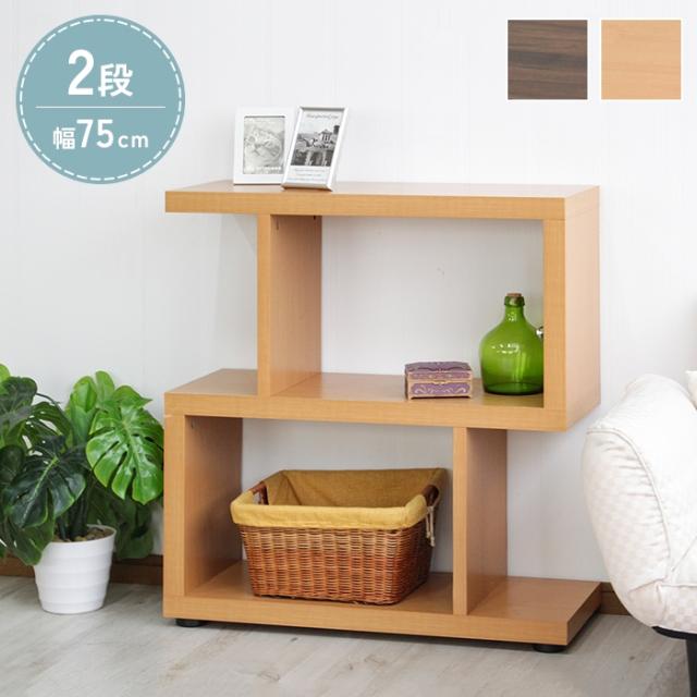 シェルフ 2段 収納棚 S字 オープンラック おしゃれ ディスプレイラック 木製 収納 間仕切り 本棚 マガジンラック フリーラック ジグザグラック 飾り棚 インテリア ブラウン ナチュラル デザインシェルフ モダン ラック