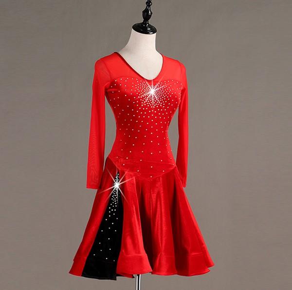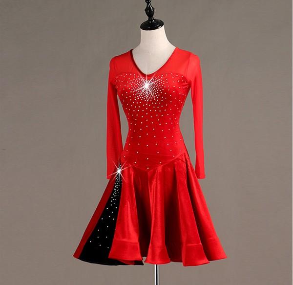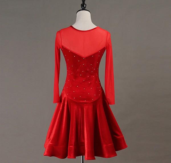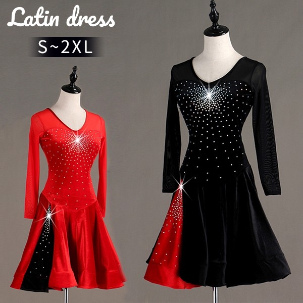 【レビュー投稿で+5%還元】社交ダンス ラテンドレス 競技用ドレス 長袖 ワンピース ステージ衣装 ラテン専用ドレス レッスン着 ラテンドレス スパンコール 発表会用 社交ダンス演出服 ルンバ サンバ ワルツ フリル裾 ブラック レッド S M L XL 2XLas003s1