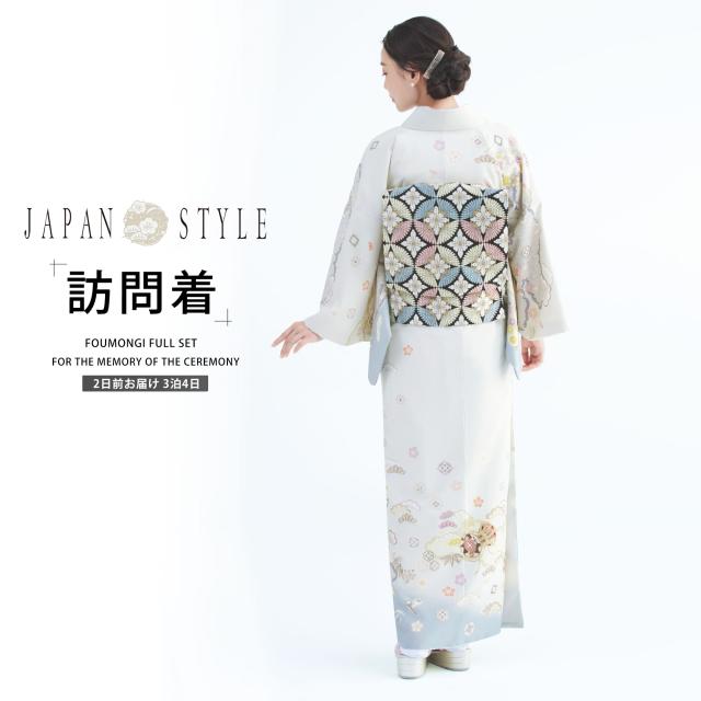 JAPAN STYLE 訪問着 レンタル 着物レンタル 貸衣装 フルセット 入学式 卒業式 七五三 お宮参り 結婚式 お宮参り 結納 お茶会 パーティー 母親 ママ 人気 ライトグレイ 灰色 古典 No.0240