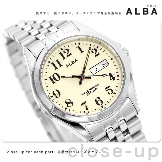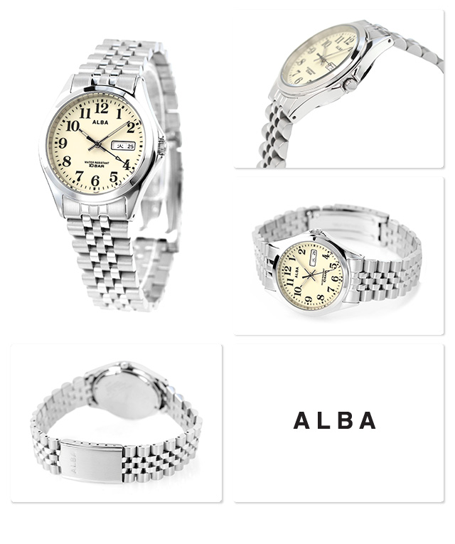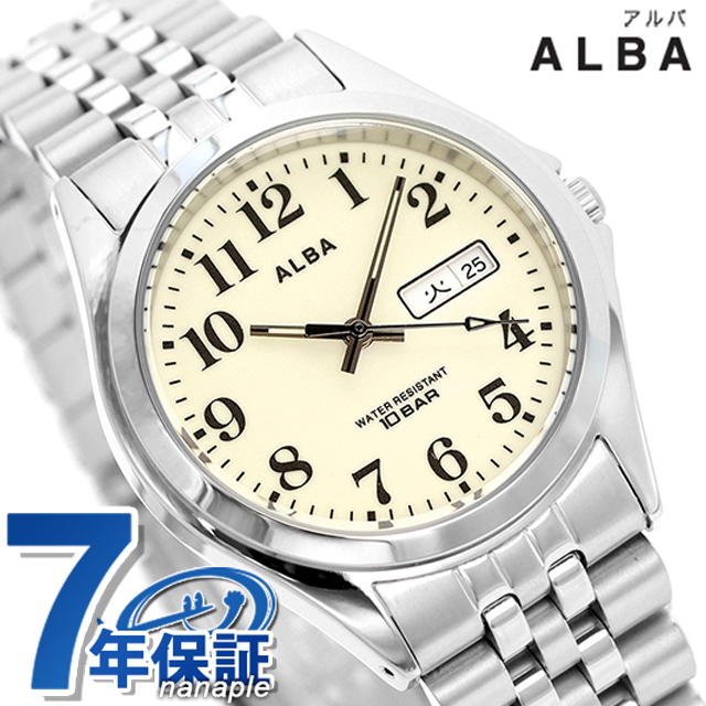 正規品 7年保証キャンペーン セイコー アルバ クオーツ メンズ 腕時計 AQGK470 SEIKO ALBA アナログ クリーム ◆アルバは、スタンダードなデザインからスポーティなデザインまで、幅広い年齢層に向けたクオーツウォッチを展開。見やすさと使いやすさに加え、それぞれのシーンにあった飽きのこないデザインが魅力です。 スタンダードなデザインで見易く、実用性を求める方におススメ。無垢バンドを採用し耐久性に優れた質感に。10気圧防水付で安心の実用性。シンプルなデザインに大きすぎず、小さすぎない、丁度良い大きさもポイント。 発売日:2023年04月発売