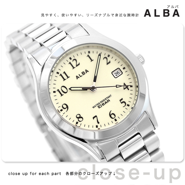 正規品 7年保証キャンペーン セイコー アルバ クオーツ メンズ 腕時計 AQGK473 SEIKO ALBA アナログ クリーム ◆アルバは、スタンダードなデザインからスポーティなデザインまで、幅広い年齢層に向けたクオーツウォッチを展開。見やすさと使いやすさに加え、それぞれのシーンにあった飽きのこないデザインが魅力です。 スタンダードなデザインで見易く、実用性を求める方におススメ。無垢バンドを採用し耐久性に優れた質感に。10気圧防水付で安心の実用性。シンプルなデザインに大きすぎず、小さすぎない、丁度良い大きさもポイント。 発売日:2023年04月発売