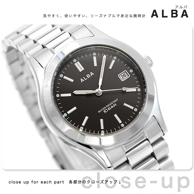 正規品 7年保証キャンペーン セイコー アルバ クオーツ メンズ 腕時計 AQGK474 SEIKO ALBA アナログ ブラック 黒 ◆アルバは、スタンダードなデザインからスポーティなデザインまで、幅広い年齢層に向けたクオーツウォッチを展開。見やすさと使いやすさに加え、それぞれのシーンにあった飽きのこないデザインが魅力です。 スタンダードなデザインで見易く、実用性を求める方におススメ。無垢バンドを採用し耐久性に優れた質感に。10気圧防水付で安心の実用性。シンプルなデザインに大きすぎず、小さすぎない、丁度良い大きさもポイント。 発売日:2023年04月発売