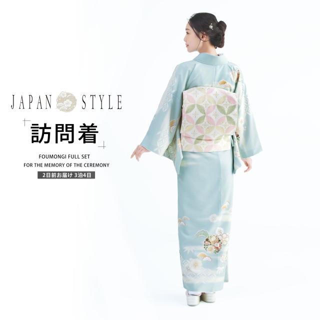 JAPAN STYLE 訪問着 レンタル 着物レンタル 貸衣装 フルセット 入学式 卒業式 七五三 お宮参り 結婚式 お宮参り 結納 お茶会 パーティー 母親 ママ 人気 ブルー 青 水色 古典 No.0242