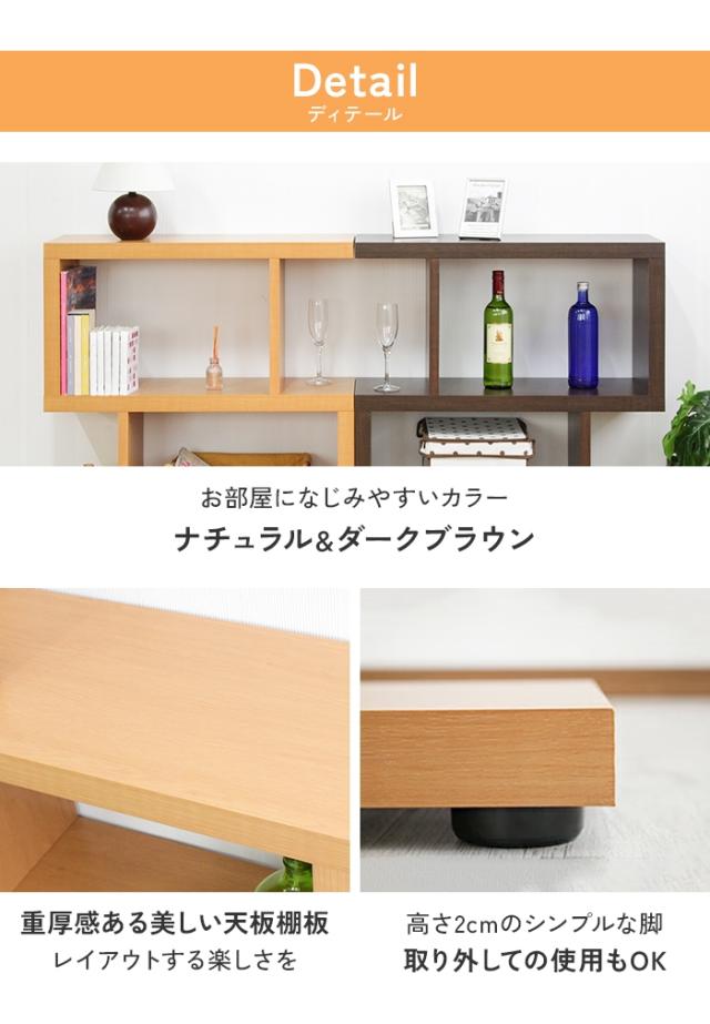 | 背板がなく圧迫感を感じないオープンシェルフ。 間仕切りとして使うと開放感のあるお部屋の雰囲気に。 縦でも横でも自由に設置できます。 キズや火・水に強いプリント紙を使用したラック。 前後から物が取り出せるので間仕切りとしても使用できます。 |