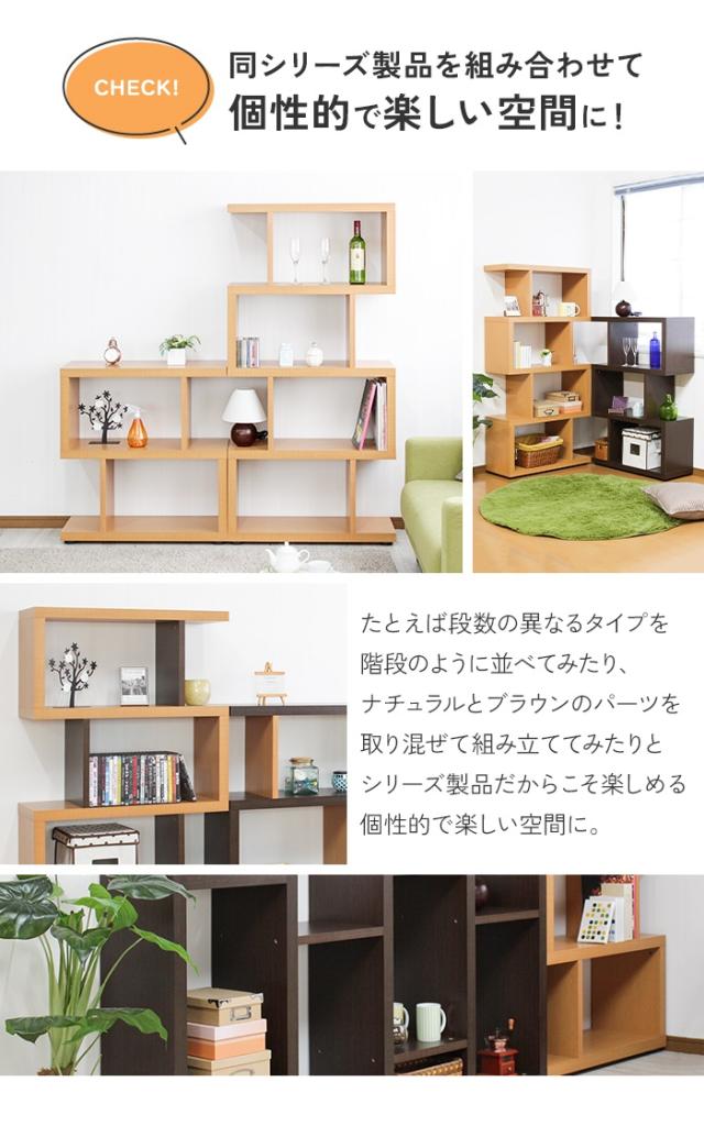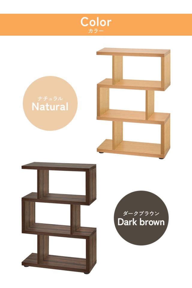 シェルフ 3段 収納棚 S字 オープンラック おしゃれ ディスプレイラック 木製 収納 間仕切り 本棚 マガジンラック フリーラック ジグザグラック 飾り棚 インテリア ブラウン ナチュラル デザインシェルフ モダン ラック