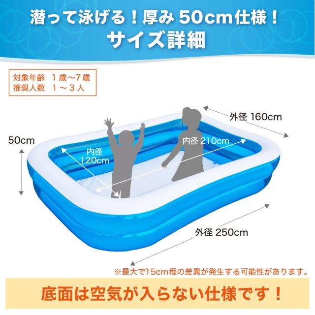 夏の暑い時期に、お家で思いっきり水遊びを楽しめる特大サイズ。250cmの広々とした空間で、最高の夏の思い出を作りましょう。