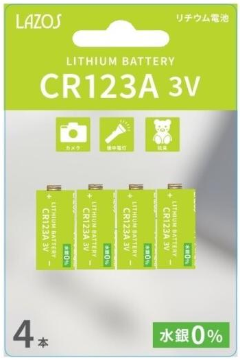 【ポスト投函で送料無料】 Lazos リチウム電池 CR123A(4本入)L-CR123AX4 1本当たり245円のお得パック