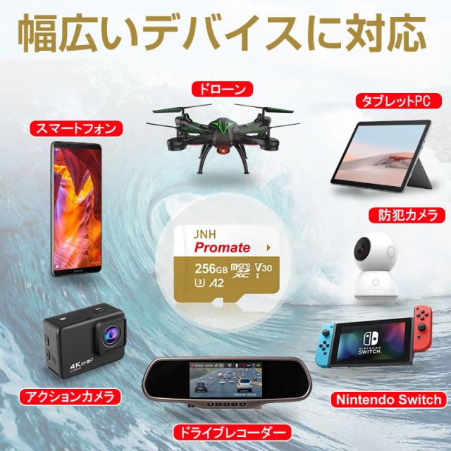 microSDXCカード 256GB R:170MB/s W:160MB/s UHS-I DDR200モード U3 V30 4K Ultra HD アプリ最適化A2対応 JNH Promate 国内正規品 5年保証 Nintendo Switch/GoPro動作確認済 micro SDXC 任天堂スイッチ対応 microSDXCカード MicroSDメモリーカード 256ギガ