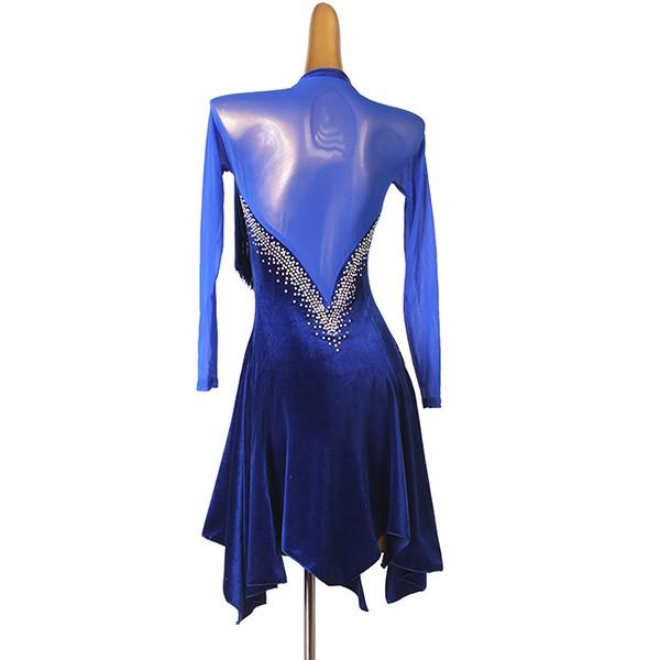 【レビュー投稿で+5%還元】社交ダンス ラテンドレス ラテンダンス フリンジ ラテン専用ドレス ワンピース 競技用 演出服 レッスン着 長袖 透け感 ベルベット ミニ丈 スリット入り セクシー ルンバ サンバ タンゴ ラテンダンスドレス ラインストーン ゴージャス 青 S M L 2L 3L