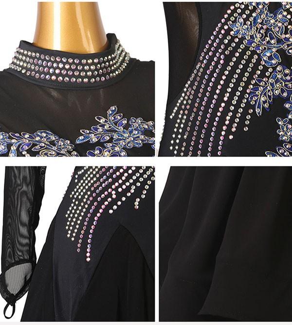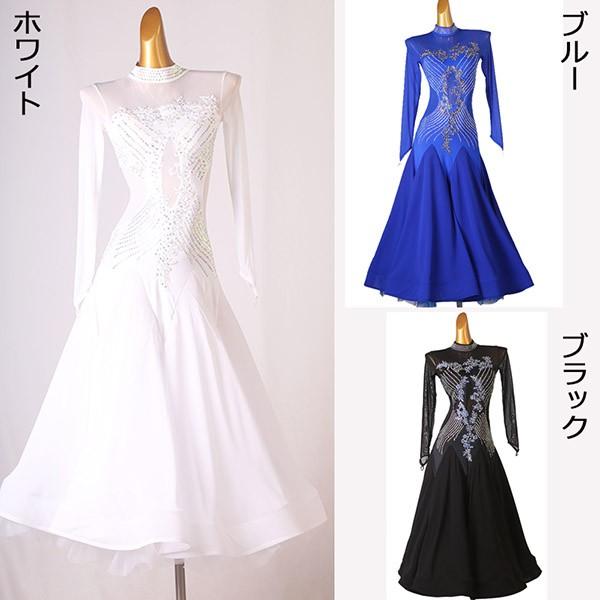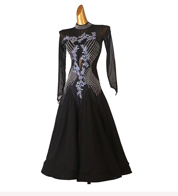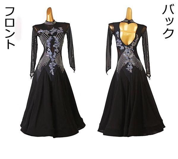 【レビュー投稿で+5%還元】社交ダンス ドレス 社交ダンス ワンピース モダンドレス 競技用 開場演出服 モダンダンス 長袖 透け感 背中空き ワルツ専用ドレス ロング丈 スタンダード デモ用 競技用 発表会用 ラインストーン ブラック 黒 ブルー 青 ホワイトS M L 2L 3Ldw183s1