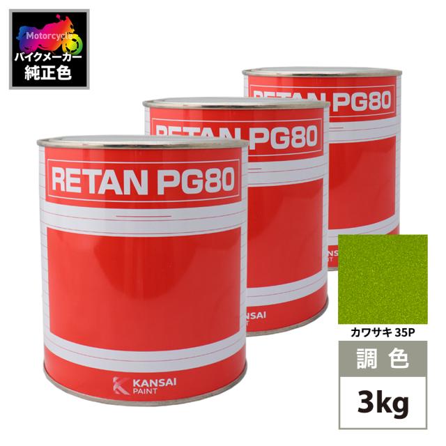 関西ペイント PG80 調色 カワサキ 35P (バイク色) キャンディーライムグリーン 原液カラーベース3kg 原液カラークリヤー3kg セット(3コート)