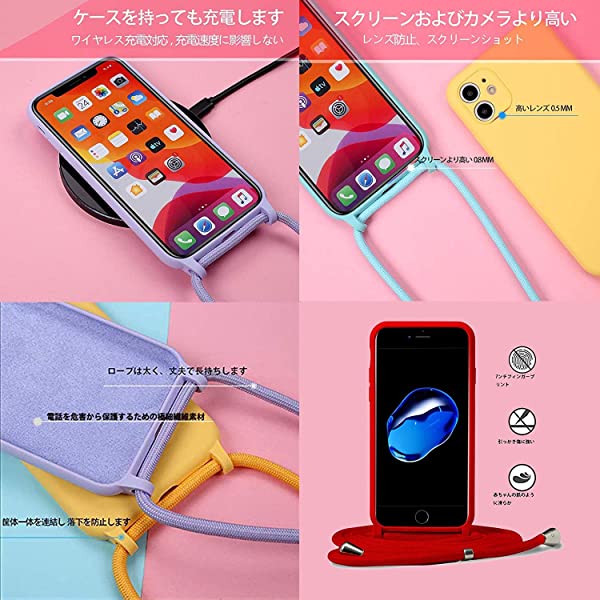 iPhone 12 mini ケース iPhone 12mini カバー ネック ショルダー ストラップ付き スマホ シリコン カバー 紐付き 斜めがけ 織りストラップ付き 調節可能なショルダー クロスボディ ネックレス 保護 薄い紫