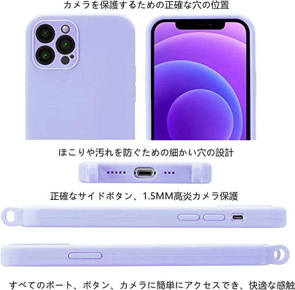 iPhone 13 Pro Max ケース iPhone 13 Pro Max カバー ネック ショルダー ストラップ付き スマホ シリコン カバー 紐付き 斜めがけ 織りストラップ付き 調節可能なショルダー クロスボディ ネックレス 保護 薄い紫