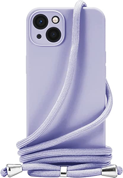 iPhone 13 ケース iPhone 13 カバー ネック ショルダー ストラップ付き スマホ シリコン カバー 紐付き 斜めがけ 織りストラップ付き 調節可能なショルダー クロスボディ ネックレス 保護 薄い紫
