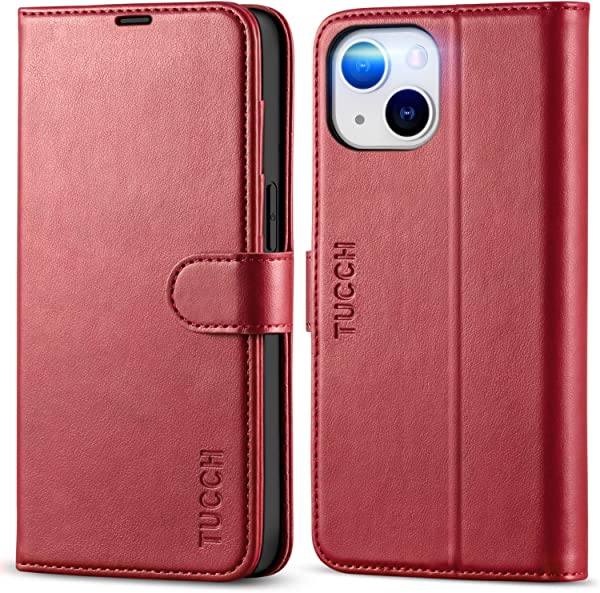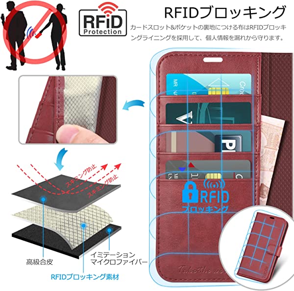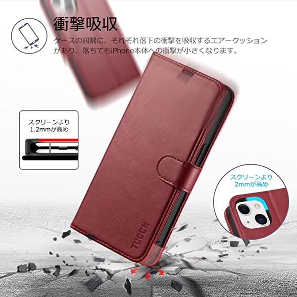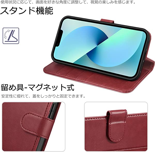 iphone 14 ケース手帳型 iphone14 ケース カード収納 スタンド機能 ワイヤレス 高級PU合皮 マグネット [RFIDブロッキング] アイフォン14 財布型 スマホケース(iPhone 14 6.1インチ対応) ダークレッド