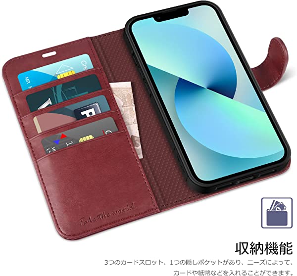 【 RFID ブロッキング 】 iphone 14 ケース手帳型 iphone14 ケース カード収納 スタンド機能 ワイヤレス 高級PU合皮 マグネット アイフォン14 財布型 スマホケース(iPhone 14 6.1インチ対応) ダークレッド ...【送料無料】