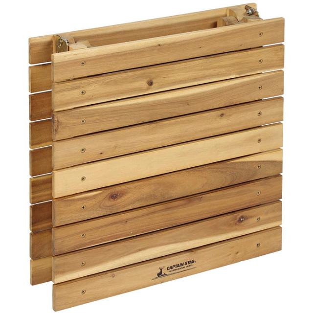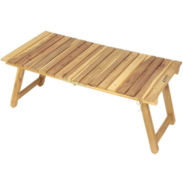 木製の落ち着いた色味が魅力的、アウトドアだけでなくお家でも使えるちょうど良いサイズのローテーブル。