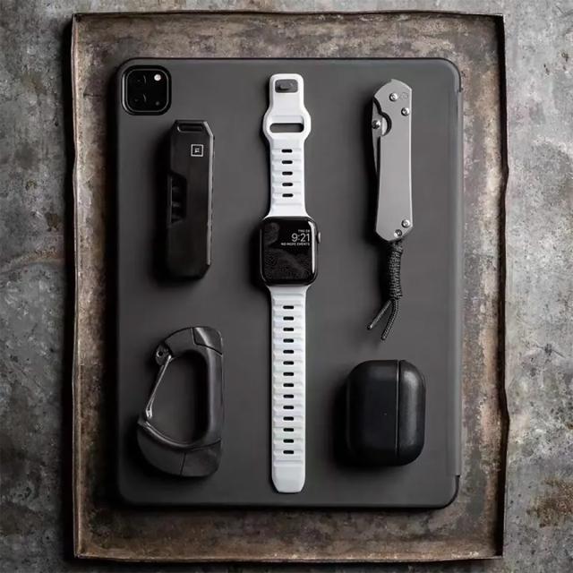 | 肌触りが良い軽量シリコン素材を使用したアップルウォッチの取替ベルトです。 品質の高いシリコン素材を使用しており肌触りが良く柔らかい素材だから 腕にとてもフィットします。またバックルを留める穴を沢山デザインする事により通気性を高めているのでシリコンによくある蒸れを防ぐのでジョギングやジムなどにとても適したバンドです。 カラーリングはくすんだ色を中心に10色をラインナップ。 その日の気分に合わせて着せ替えて楽しめるおススメのベルトです。 |