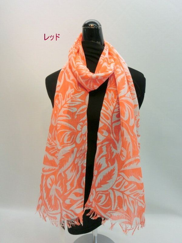 春夏のファッションのポイントやUVケアにオシャレなボタニカル柄ストールをどうぞ。