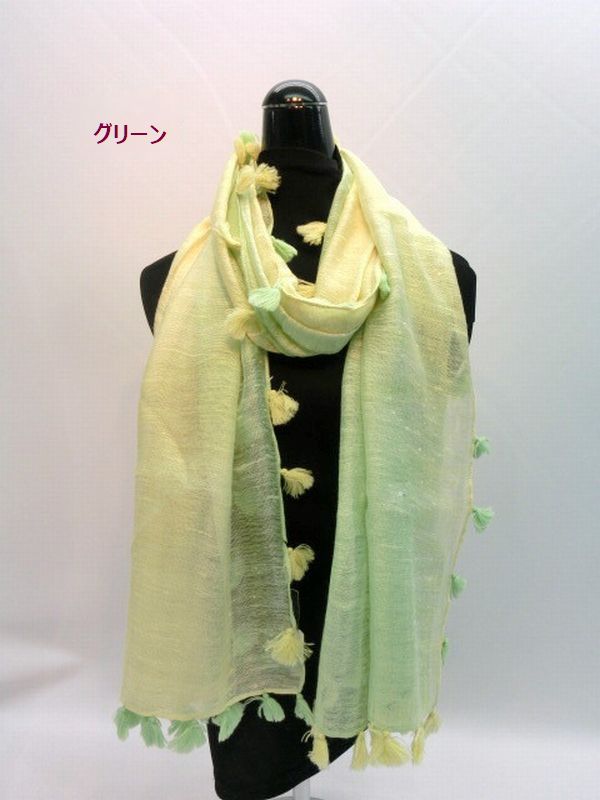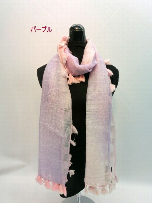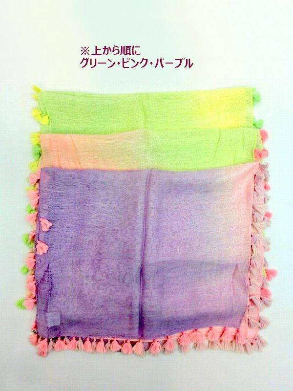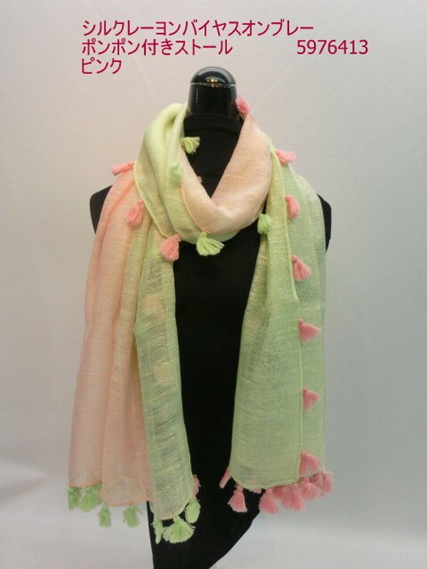 ストール ファッション小物 レディースファッション シルクレーヨン バイヤス オンブレー ポンポン付きストール 春夏らしい 2色の房 【送料無料】