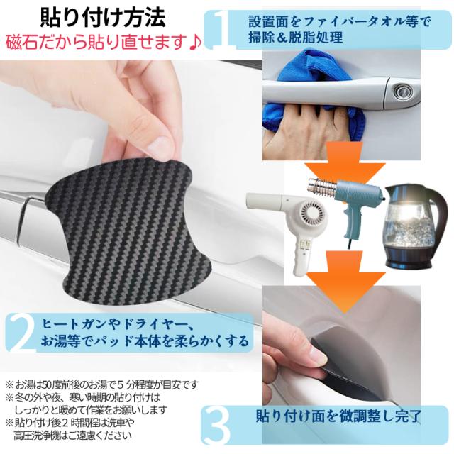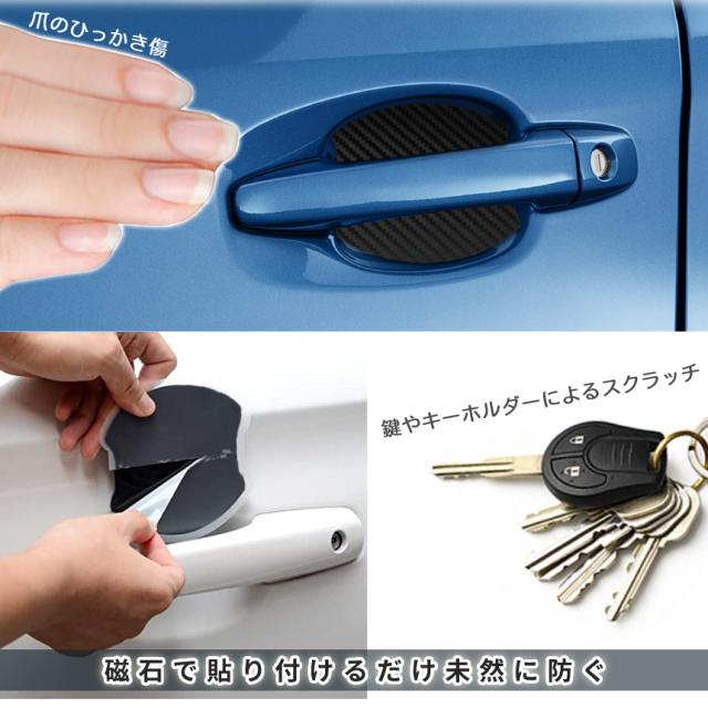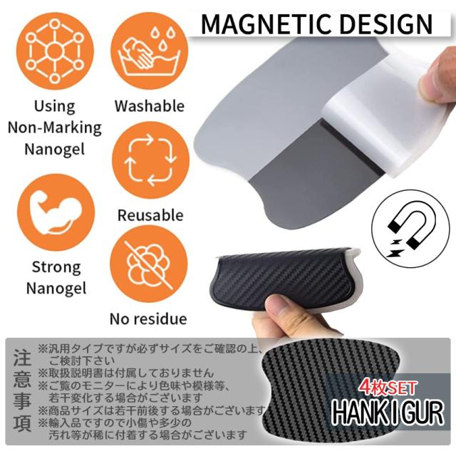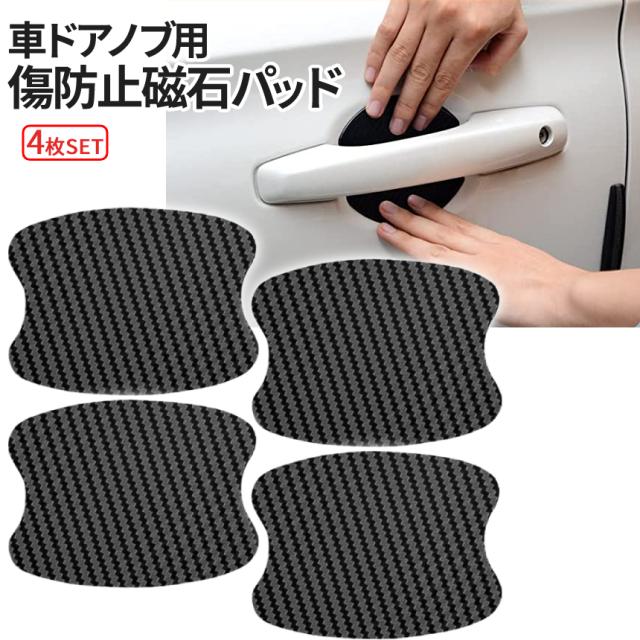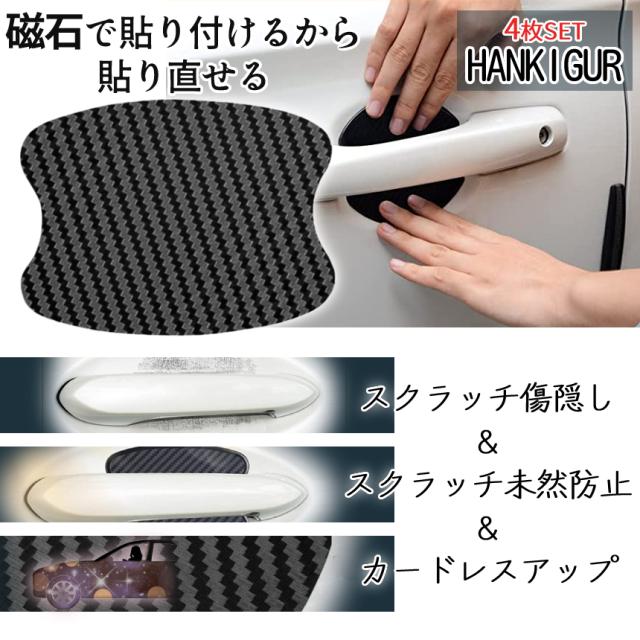 車 ドアハンドル ガード 傷 防止 パッド 磁石 プロテクター 4枚 セット ドア ハンドル ノブ マグネット 汎用 傷防止 保護 ドアノブ 扉 スクラッチ傷 カーボン フィルム カー 用品 ドレス アップ HANKIGUR 送料無料