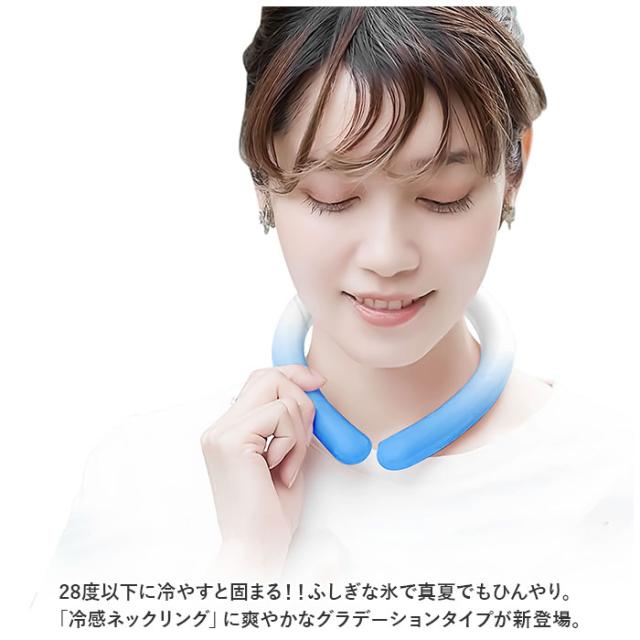 | 商品説明 | ・28度以下に冷やすと固まる!!ふしぎな氷で真夏でもひんやり。「冷感ネックリング」に爽やかなグラデーションタイプが新登場。 【首元からクールダウン】 ・身体全体を冷やすには、首すじの血液を冷やすことが効果的。アクアブルーのリングを首にフィットさせるだけで、ひんやりクールダウン。(※28度以下で装着後、約1時間〜1時間半程度冷たさが持続) 【28度以下で自然凍結】 ・リングの内部には、繰り返し熱と冷気を放出する新素材「PCM(パラフィンワックス)」を充填。28度以下で自然凍結し、快適な温度をキープ。 【首にサッと掛けるだけ!】 ・装着方法はとっても簡単。リングの先端を前方に向けて軽く開き、首にはめるだけ!コンパクトで軽量だから、持ち運びに便利で、スポーツ時でもジャマにならないのが嬉しいポイント。 【冷却・充電不要でとってもECO】 ・保冷剤のように冷凍庫などで冷却する手間がなく、充電作業や電池も一切不要!繰り返し使えるからとってもエコ♪(※28度以下でひんやりとした個体に変化しますが、冷凍庫で約20分、水温20度以下の冷水で約30分以上冷やせば、冷却時間の短縮が可能。) 【マイルドな冷たさが持続】 ・素肌に触れても冷え過ぎないマイルドな冷たさが特徴。お子さまのデリケートな肌にも安心。 【快適なままひんやり】 ・保冷剤や氷と違い、溶ける際に結露もしづらいため、肌や衣服が濡れることなくサラサラの付け心地が長続き。 【ご家族みんなで使える♪】 ・こども用Sサイズ(首回り約22cm〜30cm)、大人用Mサイズ(首回り約30cm〜38cm)、大人用Lサイズ(首回り約38cm〜45cm)。ご家族みんなで使える3サイズ展開。 【真夏の猛暑対策に!】 ・アウトドアやスポーツ、真夏のお出掛け時の熱中症対策に大活躍!ご自宅でのひんやりリラックスタイムにも最適。 |