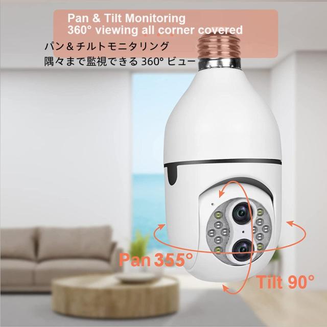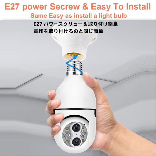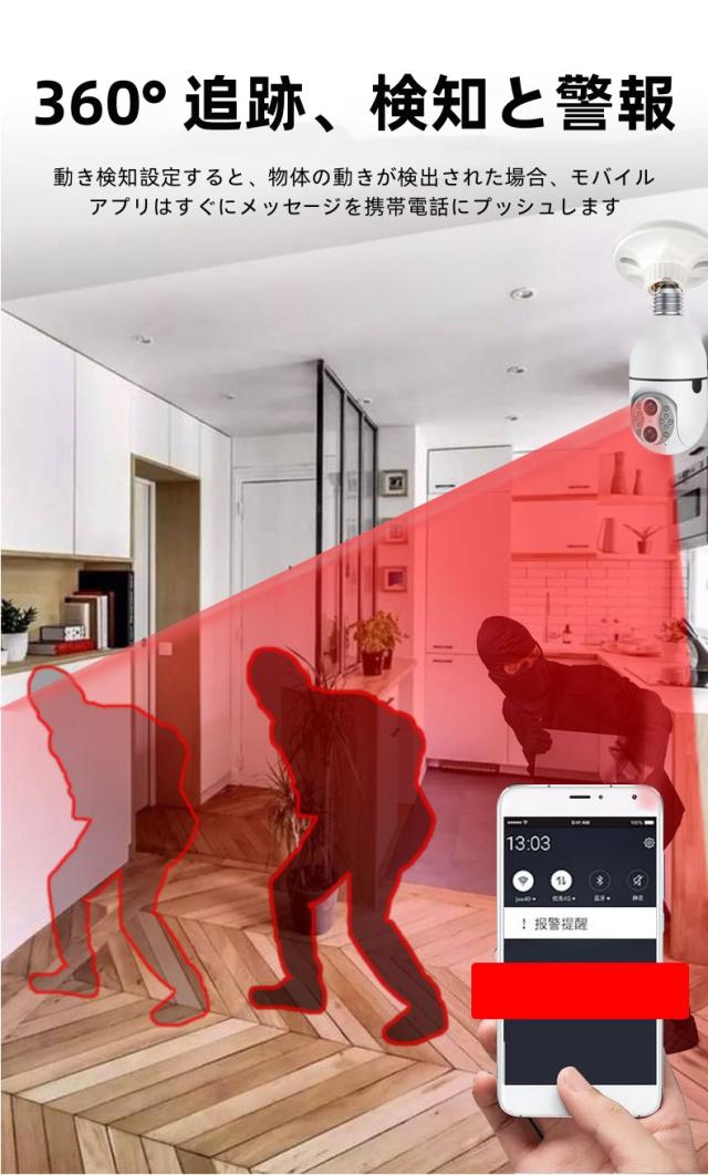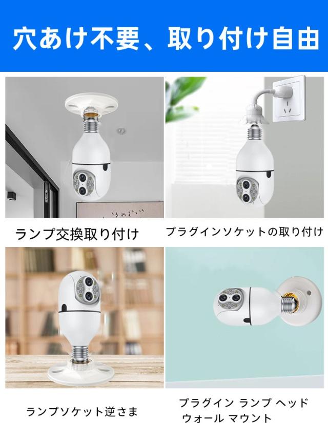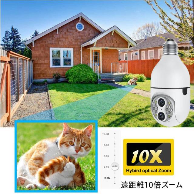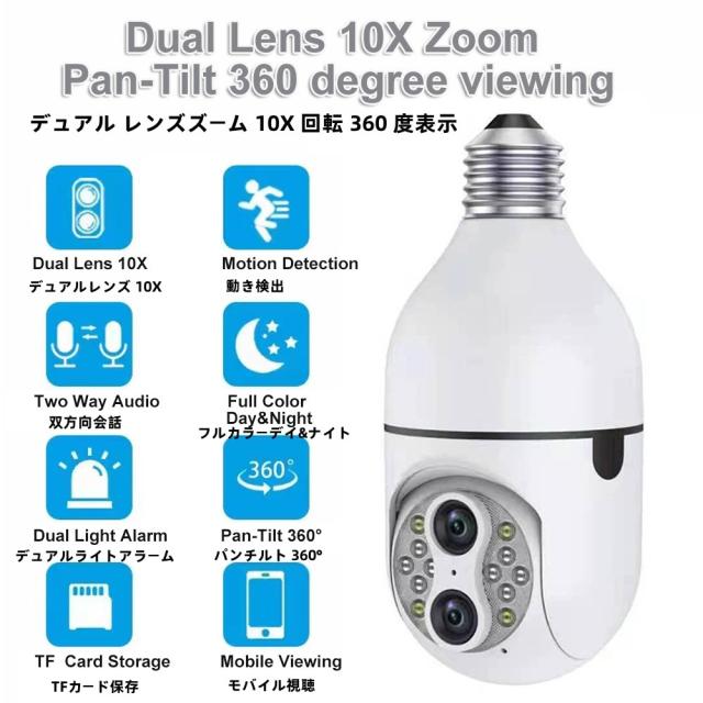 欧米大人気!最新E27電球型防犯カメラ 双眼レンズ WIFI機能10Xレンズズーム 暗視機能にフルカラーナイトビジョン 動き検知 自動追跡 メッセージ警報 防犯カメラと監視カメラ